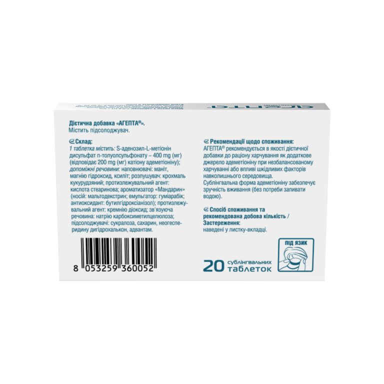 Зручні сублінгвальні таблетки (розчиняються під язиком) адеметіоніну.