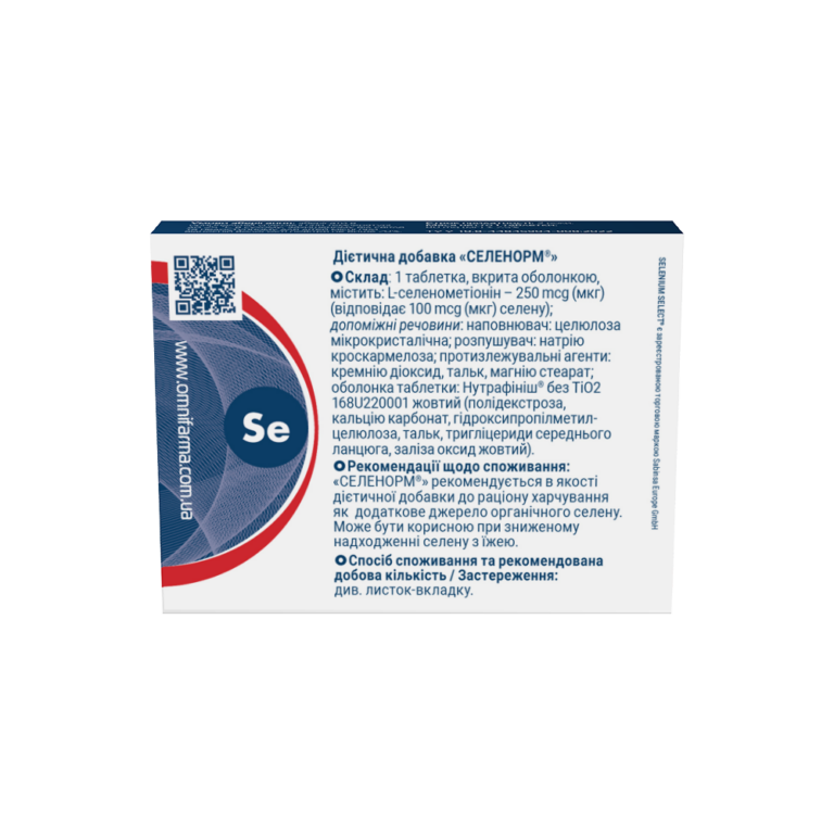 Органічна форма селену (L-селенометіонін) для усунення дефіциту мікроелементу.